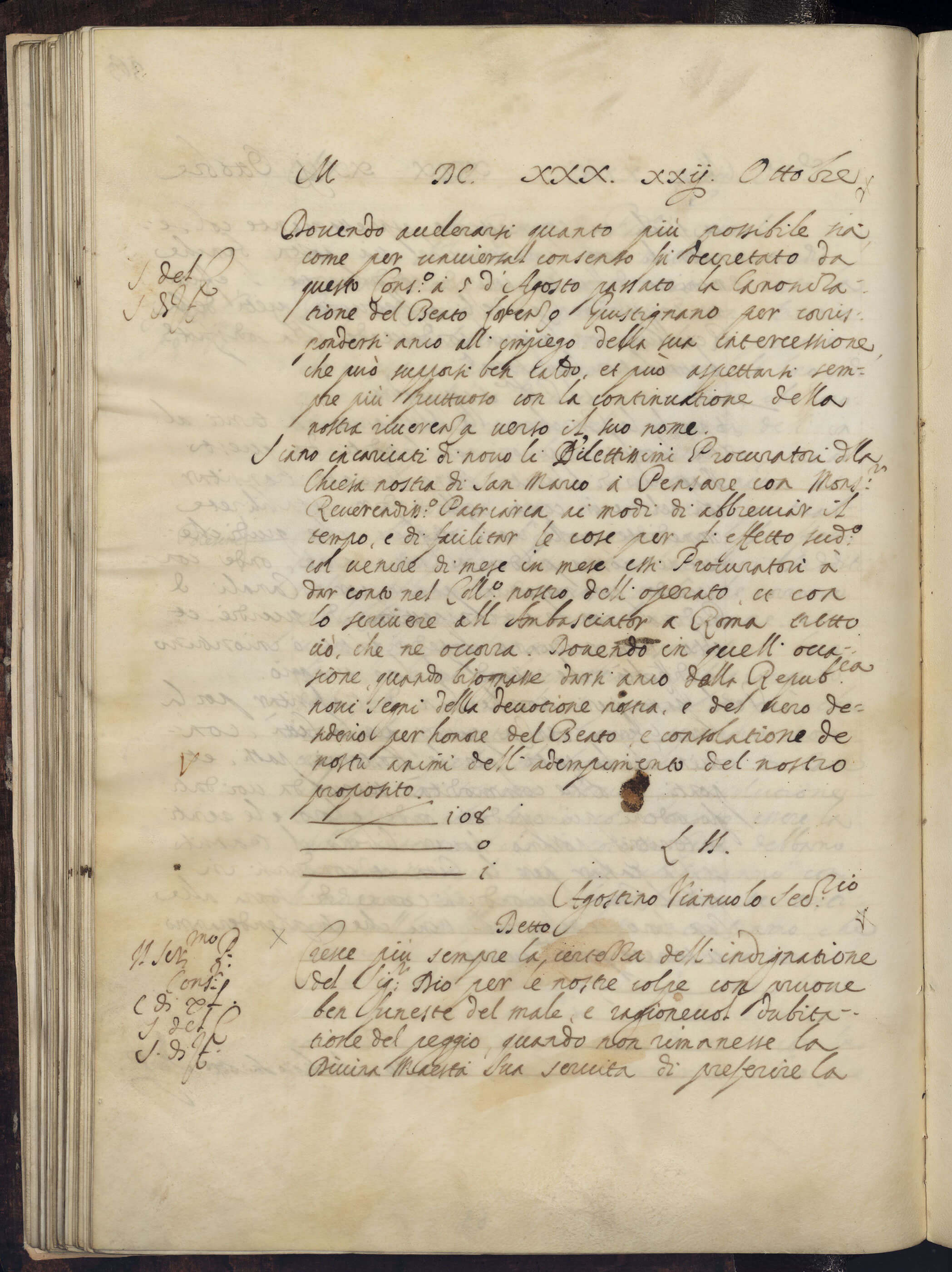 Tra le ricorrenze più sentite dai veneziani, e tra le più care al cuore della città, si annovera sicuramente la festa della Madonna della Salute, che da quasi quattro secoli si officia il 21 novembre di ogni anno. Anche chi non è particolarmente religioso, infatti, riconosce la profonda e sincera radice di questa celebrazione, che trova origine in una drammatica circostanza vissuta da Venezia. Nel giugno del 1630, infatti, il marchese Alessandro Striggio jr. – famoso letterato e musicista, nonché librettista per Claudio Monteverdi –, essendo stato incaricato dal duca di Mantova di condurre negoziati politici e militari con l’alleata Repubblica, giunse a Venezia. Purtroppo era già malato di peste, e pare che sia stato il primo a introdurla in città. Subito il contagio dilagò, provocando un susseguirsi di decessi e il diffondersi del panico: nel corso dell’estate, circa 24.000 persone abbandonarono precipitosamente la città per il terrore della malattia. Con l’arrivo dell’autunno il numero delle morti crebbe a dismisura. Le autorità marciane allora si rifecero al voto fatto al Redentore durante l’epidemia del 1576, e il 22 ottobre 1630 decretarono di richiedere l’intercessione della vergine Maria, stabilendo l’erezione a spese pubbliche di una chiesa: «Si debba dal serenissimo prencipe per nome publico far voto sollenne a sua divina maestà di eriger in questa città et dedicar una chiesa alla Vergine santissima, intitolandola Santa Maria della Salute, et che ogni anno nel giorno che questa città sarà publicata libera dal presente male sua serenità et li successori suoi anderanno sollenemente col Senato a visitar la medesima chiesa, a perpetua gratitudine di tanto benefitio». Il successivo 26 ottobre, di conseguenza, il doge Nicolò Contarini si recò con gran pompa e numeroso seguito in chiesa di San Marco e fece «humilmente voto di fabricar una chiesa dedicata al suo [della Madonna] santo nome» (Collegio, Cerimoniali, reg. 3, c. 85v).